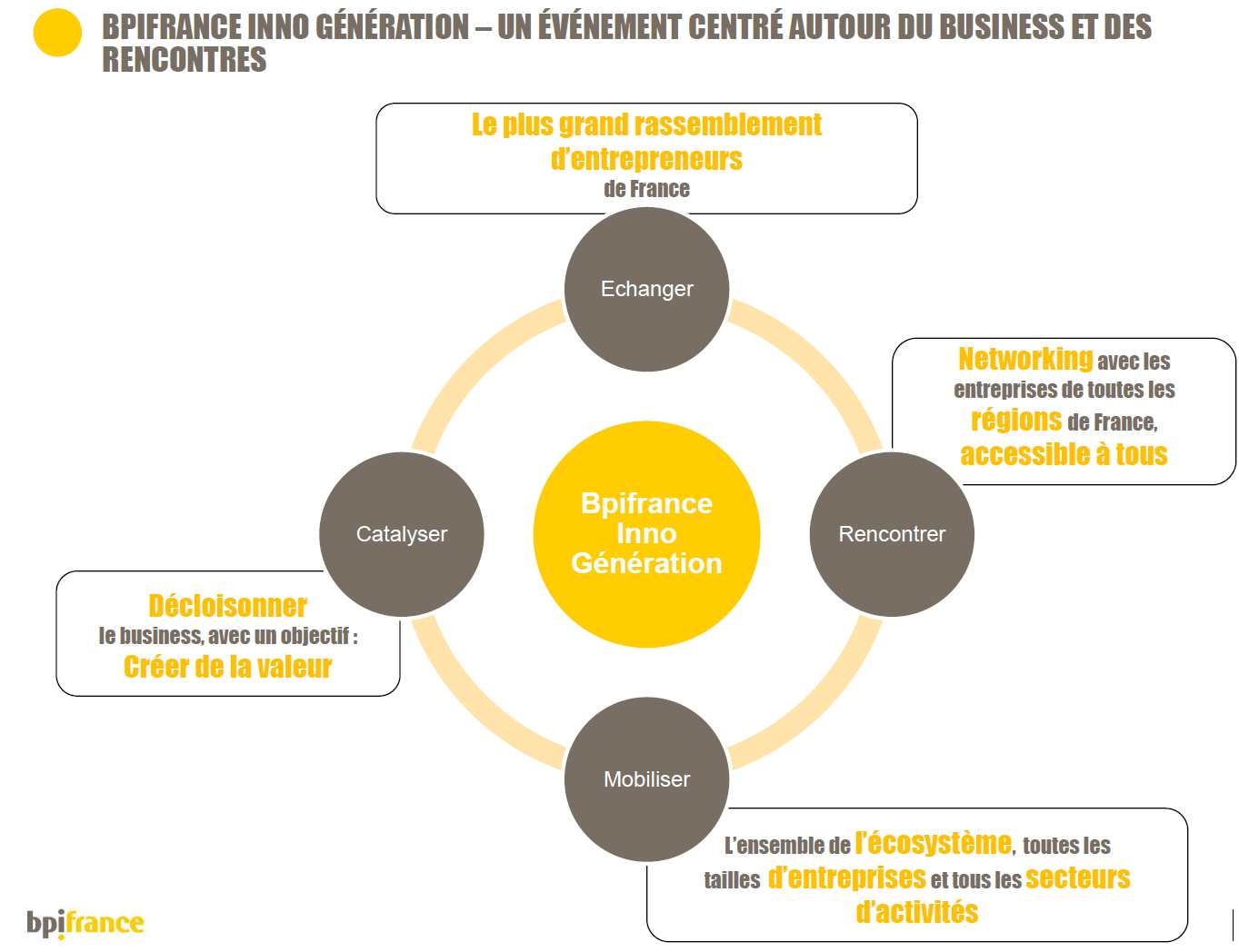 Pour Nicolas Dufourcq : « Bpifrance Inno Génération célèbre les entreprises françaises de toutes les régions, de toutes les tailles et de tous les secteurs : La French Tech, La French Fab, La French Touch. Mais l’événement donne surtout l’occasion aux entrepreneurs de faire des rencontres propices à leur business, de rompre leur isolement, d’entendre les témoignages des meilleurs dirigeants français et internationaux, d’acquérir des compétences nouvelles et d’actualiser enfin leur compréhension des transformations profondes de l’économie à l’oeuvre sous nos yeux ».