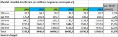 Par la suite, le marché des tranches de 300 mm devrait continuer à croître du fait de l’arrivée de productions de circuits mixtes (analogiques-numériques) dans ce diamètre.