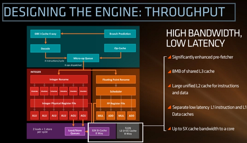 Durant la conférence Hot Chips qui vient de s’achever en Californie, AMD a communiqué quelques détails techniques concernant Zen, sa nouvelle architecture pour processeurs x86. L’américain a démontré une progression de 40% du nombre d’instructions exécutées par cycle d’horloge au moyen d’un processeur Summit Ridge à huit coeurs Zen, plus puissant selon lui qu’un processeur à huit coeurs Intel Broadwell-E cadencé à la même fréquence.