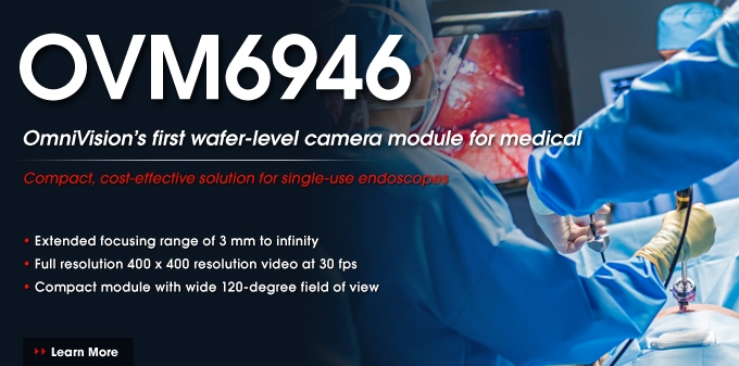 OmniVision Technologies échantillonne l’OVM6946, un module caméra optimisé pour les applications médicales comme l’endoscopie. Mesurant 1,05×1,05×2,27mm, cette caméra embarque un imageur 400×400 au format 1/18 pouce à architecture OmniBSI+. Elle capture 30 images par seconde avec un angle de vue de 120° et une mise au point démarrant à 3mm. L’OVM6946 sera disponible en volume au premier trimestre 2017.