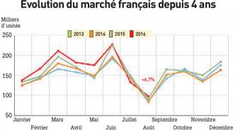 Le groupe Renault a fait des étincelles avec une progression de 13,9 % de ses immatriculations de voitures particulières neuves, son concurrent français Groupe PSA se contentant de + 0,4 %, a précisé le CCFA. Près d’un an après le début du scandale aux moteurs diesel truqués, le groupe Volkswagen (VW), premier importateur, a quant à lui vu ses livraisons chuter de 8 % par rapport au même mois de l’année dernière, selon la même source. Si la progression de 6,7 % le mois dernier doit beaucoup à un jour ouvrable de plus qu’en 2015, la tendance reste positive en données corrigées (+ 1,9 %).