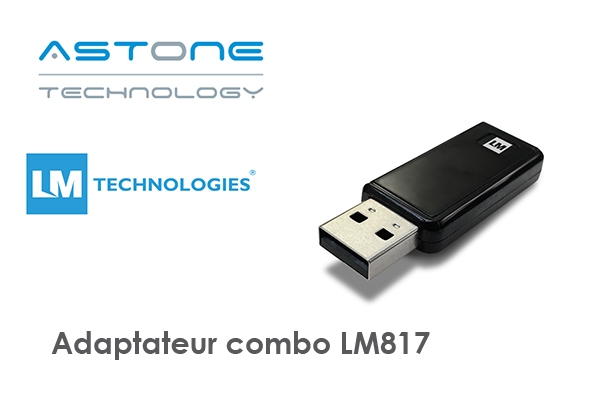L’adaptateur USB sans fil combo LM817 Dual Mode en Classe 1 (portée de 100 mètres en champs libre) offre l’échange simultanéité des données Bluetooth 4.0 et Wi-Fi via l’interface USB vers le système hôte (Host Controller).