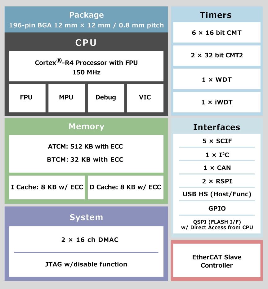 Le japonais lance un circuit de communication basé sur un coeur Cortex-R4 et facilitant la transition entre des ports série classiques et une interface EtherCAT en milieu industriel.
