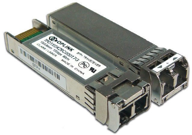 Oplink propose aussi des transmetteurs Ethernet Gigabit et 10Gigabit qui sont enfichables à chaud et permettent la transmission des signaux sur plusieurs centaines de mètres quand ils sont utilisés avec une fibre multimode, et sur 80 km quand ils sont utilisés avec une fibre monomode.