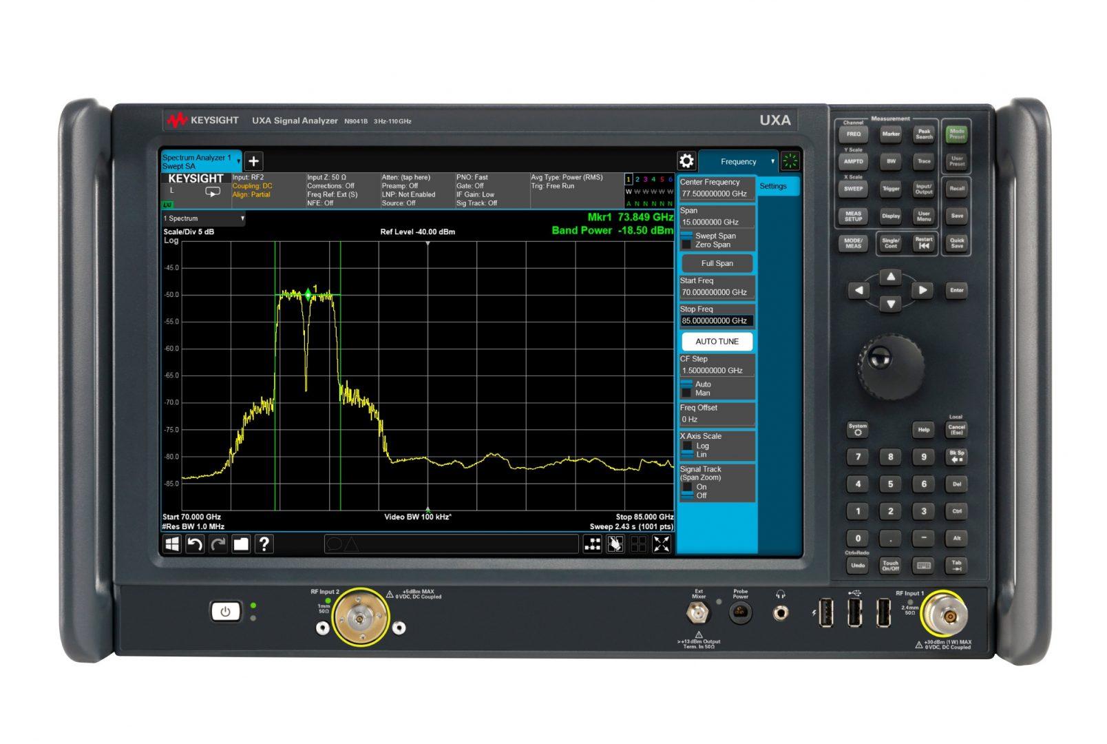 « Il s’agit du premier modèle intégré (sans mélangeurs externes) du marché capable de balayer en une seule fois les fréquences de 3 Hz à 90 ou 110 GHz. Et cerise sur le gâteau, avec une largeur d’analyse de 1 GHz en interne (25 MHz en standard) et de 5 GHz via un oscilloscope numérique externe », annonce Guy Sené, vice-président sénior des ventes mondiales de Keysight Technologies. Citons également deux autres caractéristiques remarquables, à savoir un DANL de -150 dBm/Hz et la présence en face avant d’un second connecteur (2,4 mm) pour les signaux jusqu’à 50 GHz.