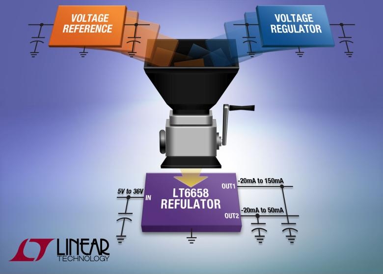 Le LT6658 de Linear Technology conjugue le faible bruit et la précision d’une référence de tension de 2,5V et le fort courant d’un régulateur de tension.
