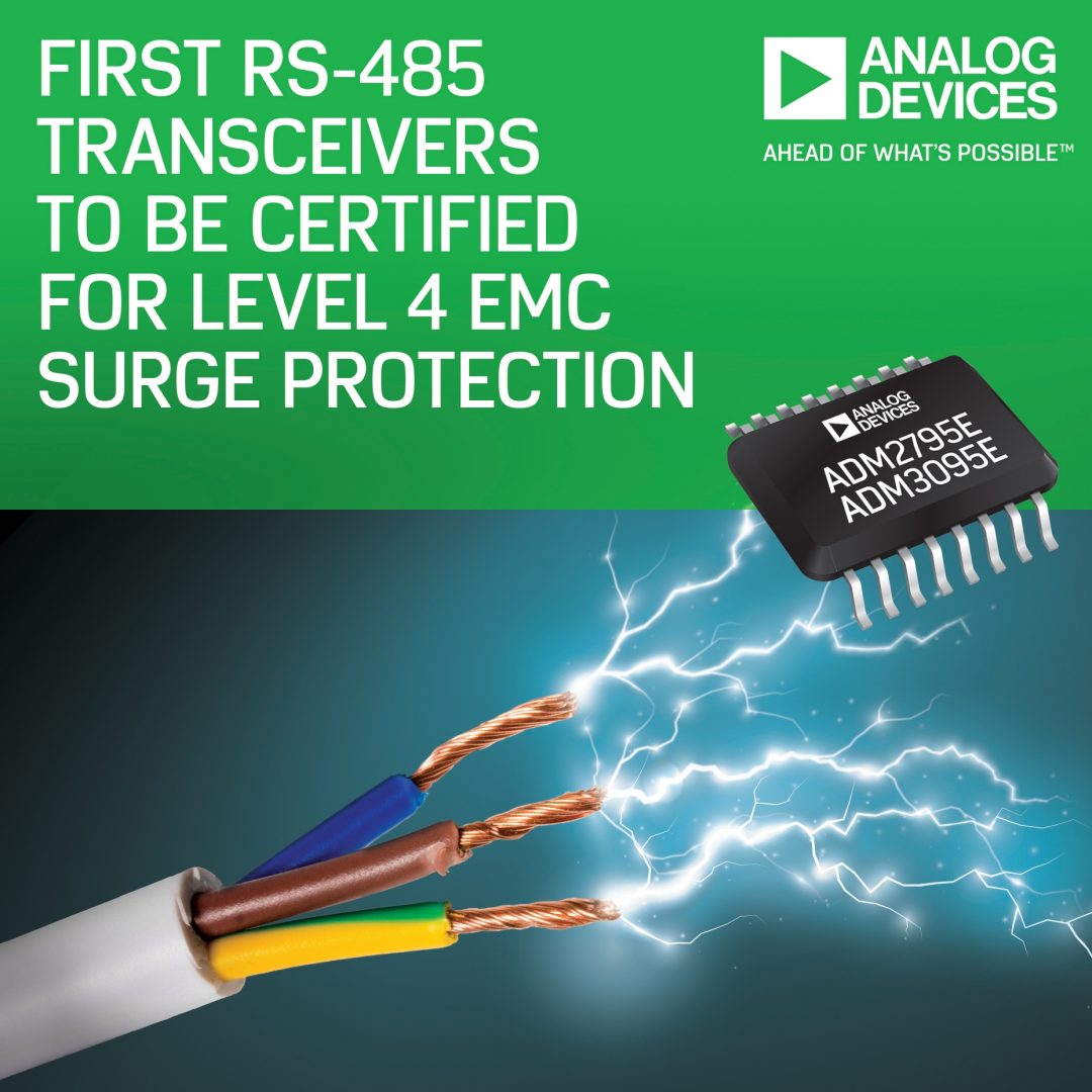 Analog Devices présente des circuits d’émission-réception conformes à la norme de protection CEI 61000-4-5 de niveau 4 contre les pics de tension transitoires.
