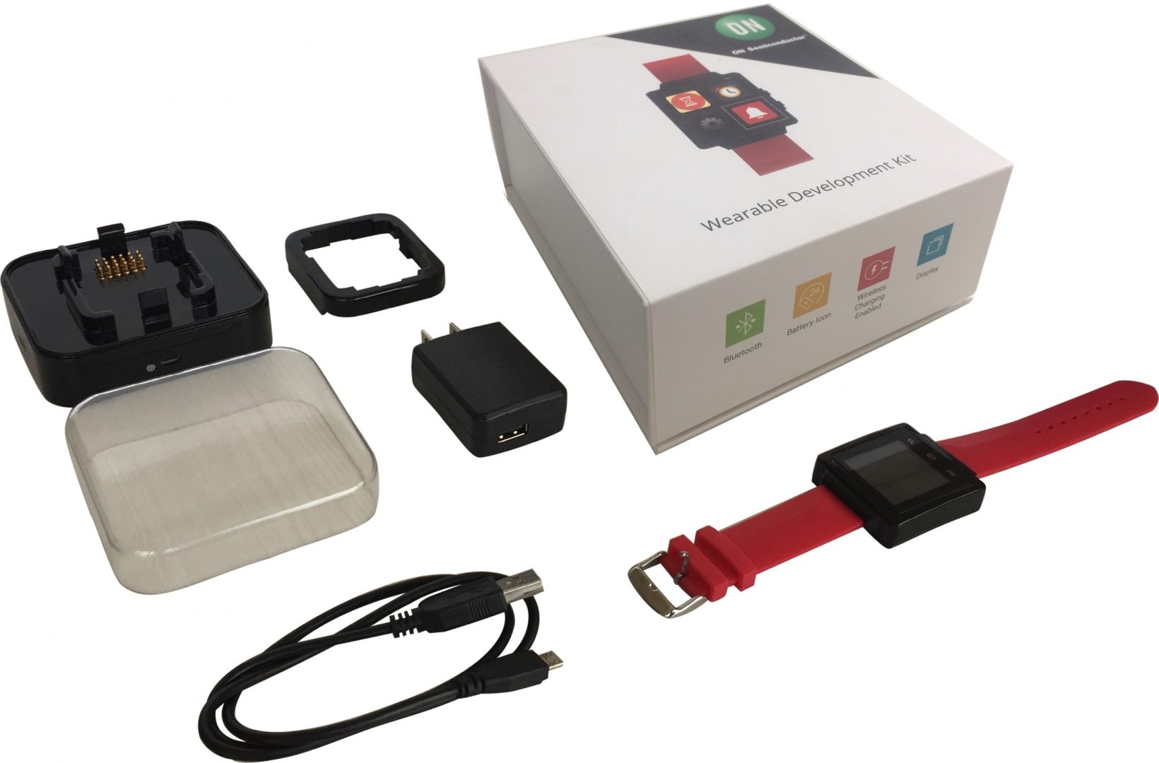 ON Semiconductor s’attaque au marché de l’électronique wearable avec un kit de développement dédié, baptisé WDK1.0. Ce kit est basé sur un processeur à coeur 32 bits Cortex nRF52832 de Nordic Semiconductor, qui embarque également un frontal Bluetooth Low Energy. ON Semi fournit, lui, le circuit de gestion d’alimentation NCP6915 (embarquant cinq régulateurs linéaires LDO et un convertisseur DC-DC), le circuit de charge de batterie NCP1855, la jauge de batterie LC709203F, le contrôleur de charge sans contact SCY1751, le capteur de mouvements sur 6 axes FIS1100 ou encore un capteur de température et un pilote d’interface tactile. Le kit comprend un écran TFT 128×128 au format 1,44 pouce, ainsi qu’une application téléchargeable sur le PlayStore d’Android et l’AppStore d’Apple.