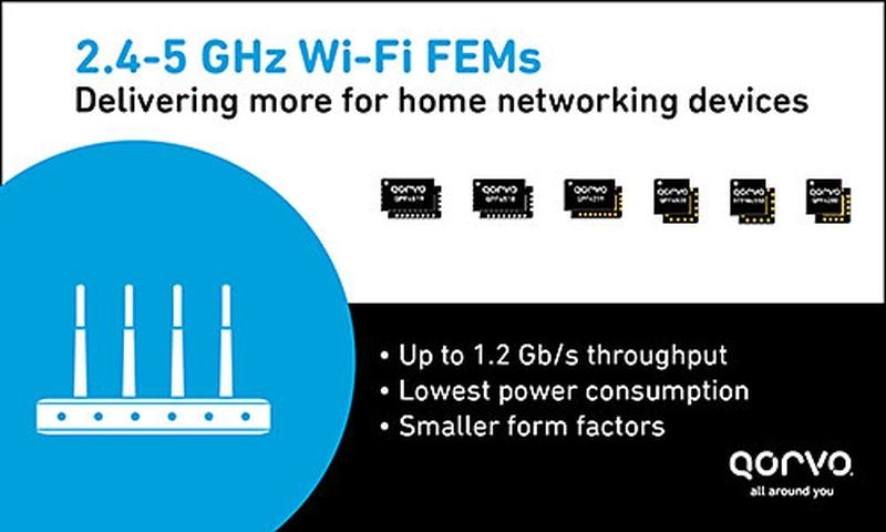Qorvo annonce une nouvelle famille de modules frontaux Wi-Fi à faible facteur de forme. Des FEM (Front-end module) qui, aux dires de l’américain, préfigurent la venue d’une nouvelle génération de routeurs, de passerelles et autres produits réseau résidentiels, à la fois plus compacts et moins énergivores.
