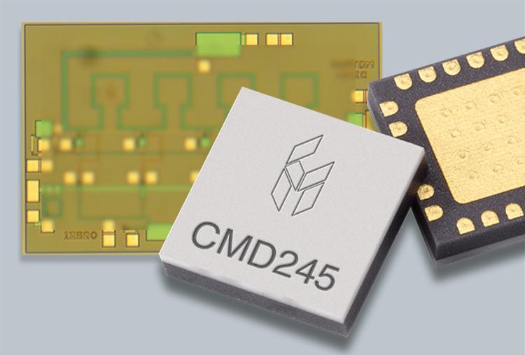 La famille se compose des CMD245 (6 à 18GHz), CMD246 (8 à 22GHz), CMD247 (30 à 40GHz), CMD245C4 (6 à 18GHz) et CMD246C4 (8 à 22GHz). Les trois premières références sont proposées sous la forme d’une puce nue, les deux autres sont encapsulées dans un boîtier QFN céramique de 4x4mm. Tous ces MMIC fonctionnent à partir d’une tension d’alimentation unique comprise entre 3V et 5V.