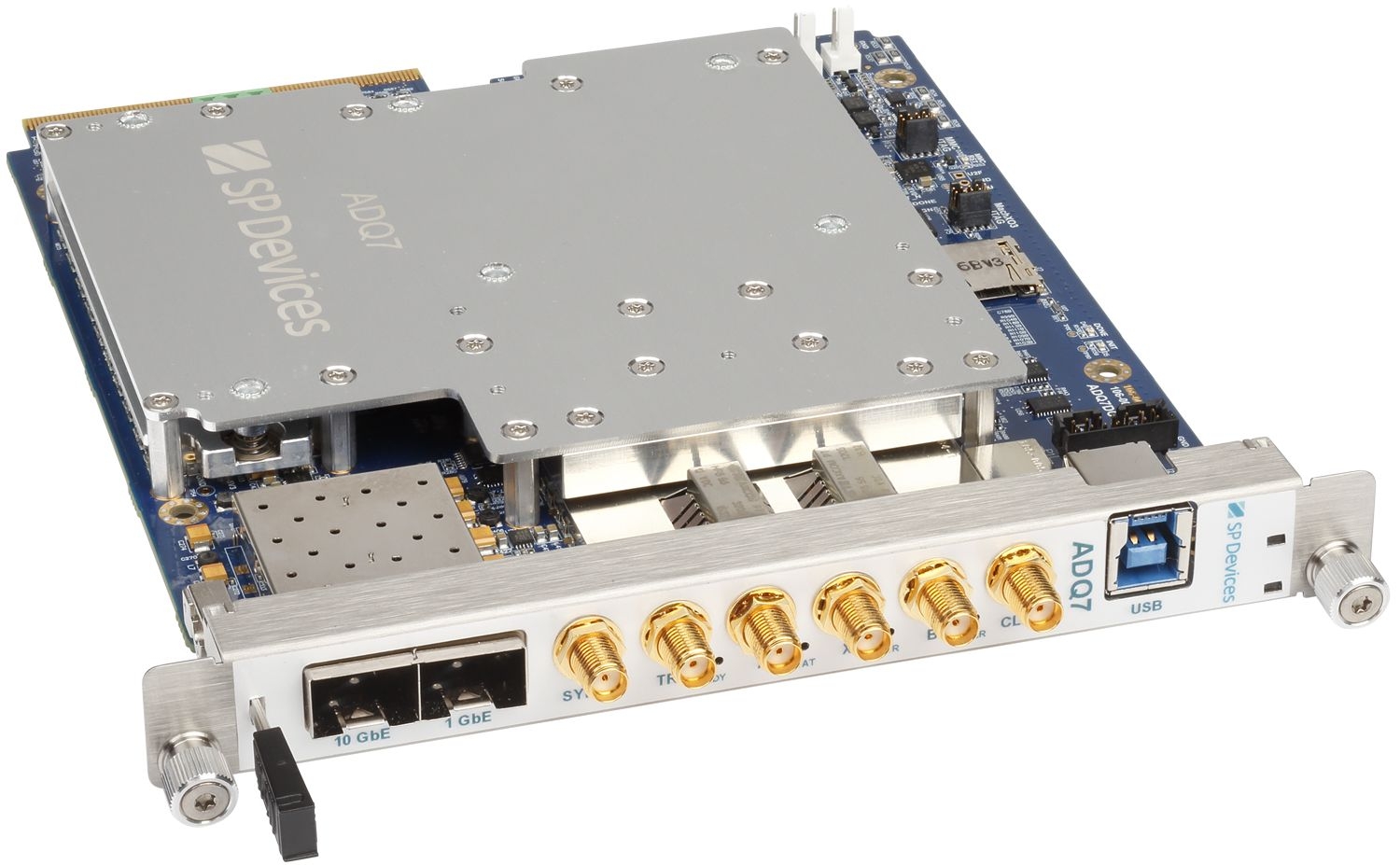 Disponible plusieurs facteurs de forme (USB, PXI Express Gen 3 x8, MTCA.4 et 10 Gigabit Ethernet), la plate-forme ADQ7 intègre également une profondeur mémoire de 4 Go, une bande passante analogqiue de 2,5 GHz, un FPGA Ultrascale XCKU060 de Xilinx, un kit de développement supportant un large éventail de langages, un débit en streaming de 5 Go/s.