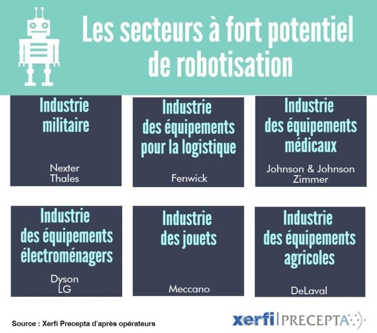 Face à l’intensification de la concurrence, les spécialistes de la robotique sont sommés de réagir. Pour les experts de Xerfi-Precepta, trois options s’offrent à eux. A l’image de Lely dans les robots agricoles et de Softbank Robotics dans les robots humanoïdes, ils peuvent décider de prendre le leadership sur leur segment d’activité. Une autre stratégie consisterait à se différencier sur des segments de niche. C’est la voie empruntée par Sepro Robotique, qui conçoit et commercialise des robots pour la plasturgie. Enfin, les opérateurs peuvent miser sur l’innovation pour se vendre à de nouveaux entrants qui chercheraient à internaliser des prestations dans le domaine de la robotique.