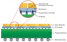 Le fabricant lancera en 2011 des modules multi-puces basés sur ses FPGA série 7 en 28 nm. Xilinx vient de lever le voile sur une technologie de FPGA empilés permettant d’en augmenter la densité de manière significative. Grâce à des méthodologies de conception 3D et de connexions traversantes ou TSV (through-silicon vias), l’américain vise des applications jusqu’ici inaccessibles même à ses FPGA série 7 en technologie 28 nm. Xilinx, qui a notamment collaboré avec TSMC à ce sujet, devrait présenter ses premiers FPGA empilés au second semestre 2011.