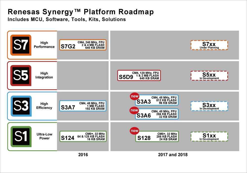 Le japonais ajoute trois groupes de microcontrôleurs Cortex-M à sa plateforme Synergy, des modèles visant les systèmes d’entrée de gamme et à faible consommation.