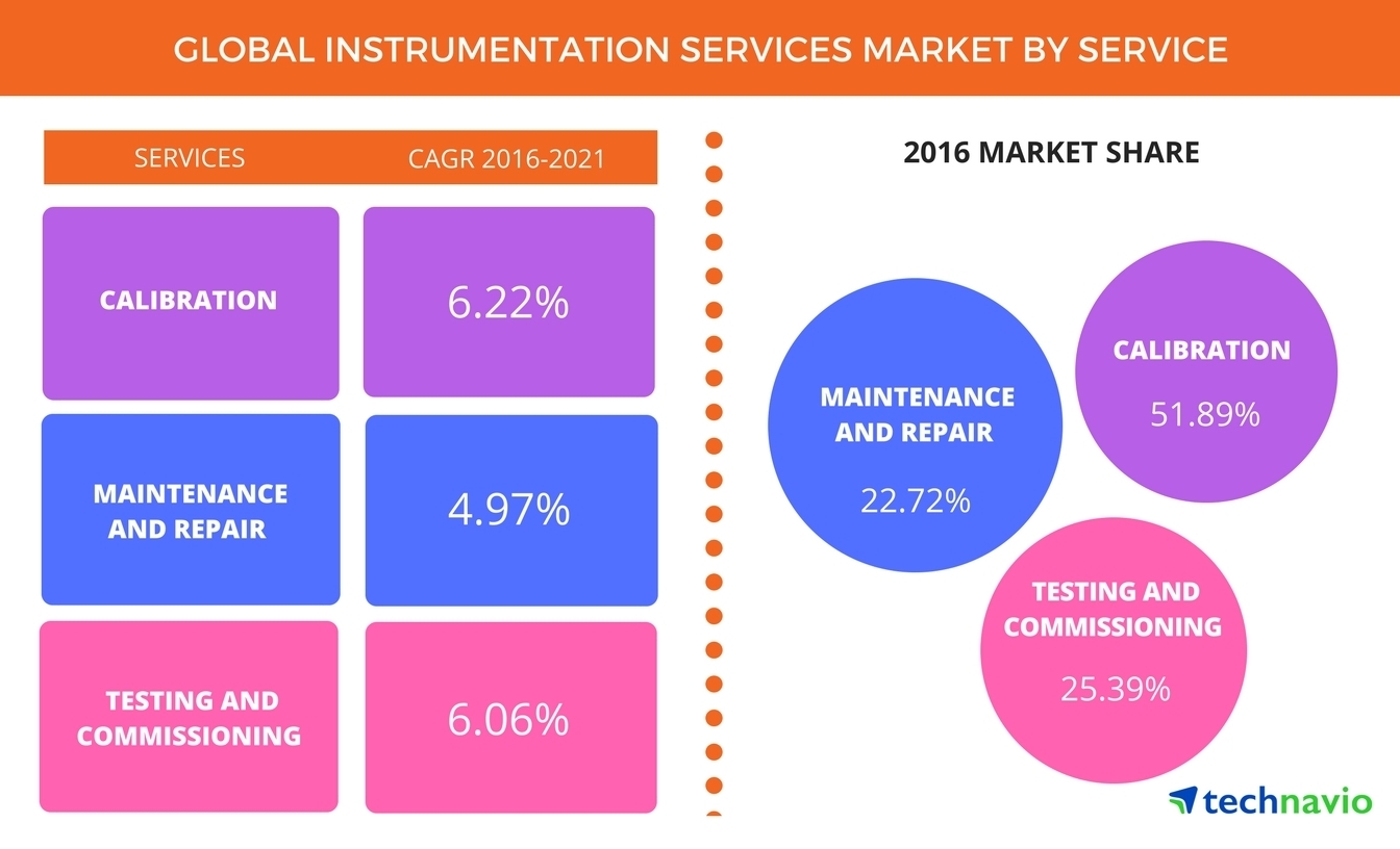 Dans son rapport intitulé « Global Instrumentation Services Market 2017-2021 », la société d’analyses britannique Technavio prévoit que le marché mondial des services en instrumentation atteindrait un montant de 5,99 milliards de dollars en 2021. Le taux de croissance annuel moyen (CAGR) serait ainsi de près de 9 % entre 2017 et 2021.