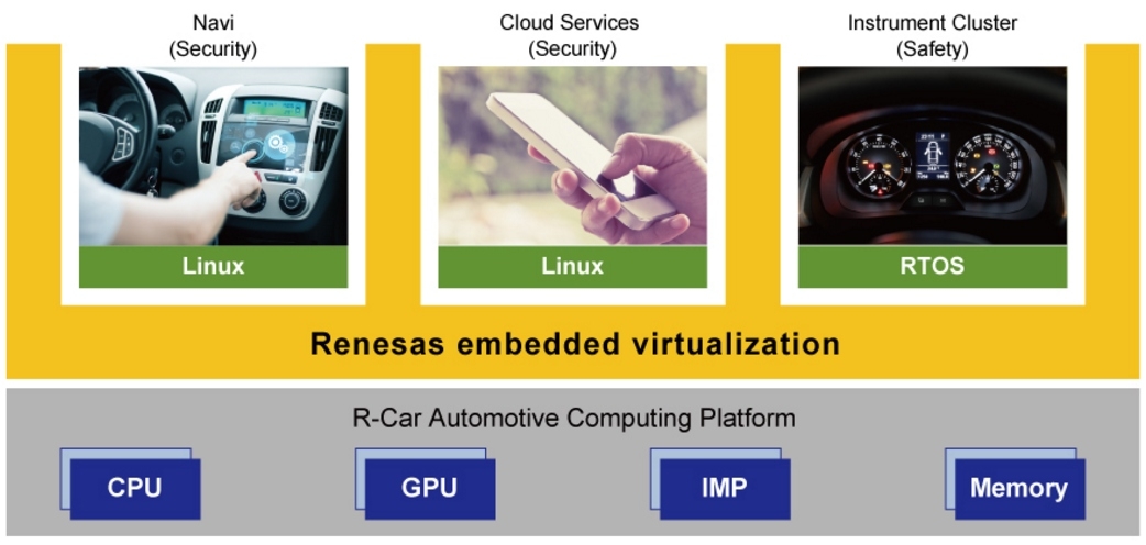 Renesas Electronics annonce la disponibilité d’un nouvel ensemble logiciel dédié à sa famille de processeurs automobiles R-Car et comprenant une technologie de virtualisation et des fonctions permettant d’améliorer la sécurité fonctionnelle des véhicules en cas de pannes et d’assurer l’intégrité des données qui y circulent. L’aspect virtualisation repose sur le superviseur Integrity Multivisor de Green Hills Software, qui découpe le système en partitions indépendantes à partir d’un ou de plusieurs systèmes d’exploitation classiques (Android, Linux, RTOS, etc.) sans avoir à recourir à plusieurs processeurs.