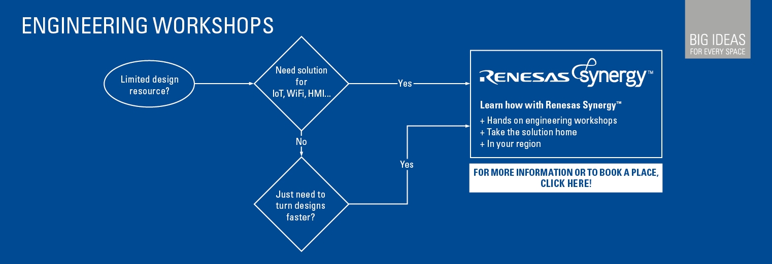 Venez maîtriser ces nouvelles technologies IoT en participant aux journées d’ateliers pratiques gratuits et en français sur la plateforme Synergy organisés par Renesas en France en 2017.