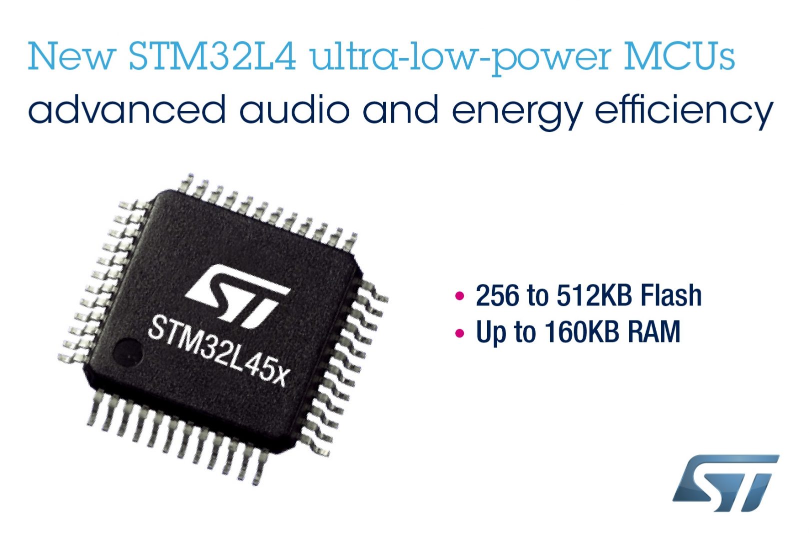 STMicroelectronics a lancé la production en volume des STM32L45/46x, une gamme de microcontrôleurs à coeur Cortex-M4 qui se distinguent notamment par la présence sur la puce de modulateurs audio DFSDM (digital filter for sigma-delta) simplifiant le traitement de flux audio, par exemple la localisation sonore et l’annulation de bruit. Ces circuits bénéficient également d’un générateur de nombres aléatoires couplé, pour ce qui est du STM32L462, d’un accélérateur AES-256.