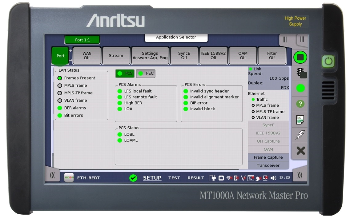 Ce testeur tout-en-un supporte désormais plus de standards d’interface que tout autre testeur de réseau transport portable du marché, affirme la société, à savoir les normes CFP4/QSFP28 (100GbE/OTU4), QSFP+ (40GbE/OTU3), SFP28 (25GbE), SFP+/SFP (GbE et10GbE, OTU1 etOTU2, STM1-64, OC3-192, 1GFC et 16GFC, CPRI1-8, OBSAI1-4) et RJ45 (de 10 Mbit/s à 1 Gbit/s).