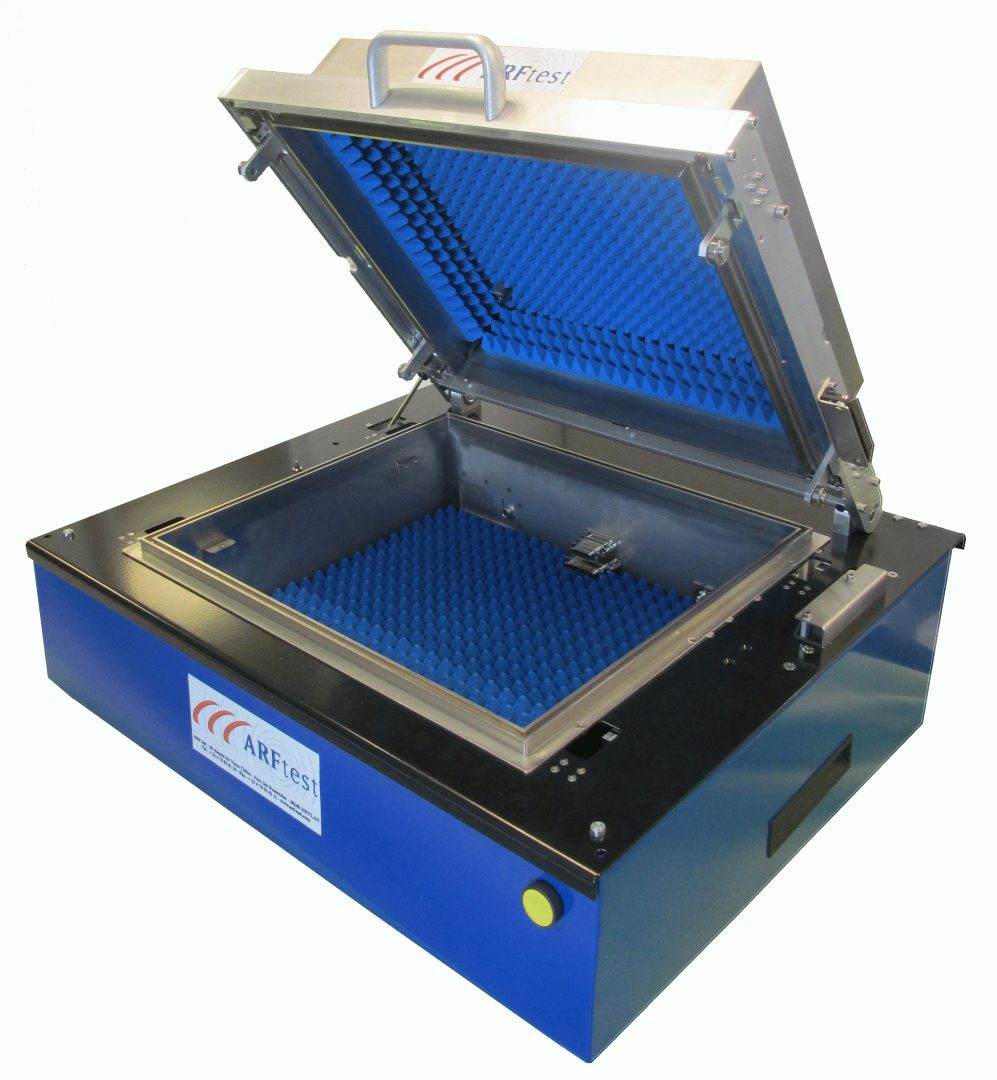 Destiné aux tests PCB ou Final en environnement fortement perturbé, il permet de garantir une isolation supérieure à -100Db lors des tests RF des bandes Bluetooth,WiFi, LoRaWan, Sigfox, Zigbee , etc.