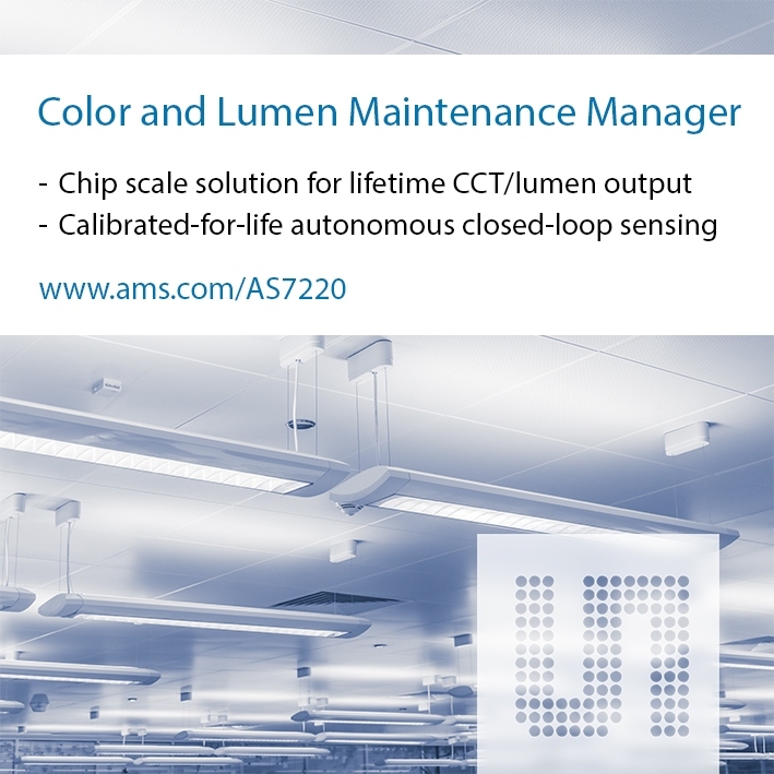 ams a initié la production en volume de l’AS7220, un circuit de gestion d’éclairage intégrant à la fois un capteur de couleurs XYZ et une commande de Led intelligente. Il permet typiquement d’adapter automatiquement le pilotage de diodes électroluminescentes dédiées à l’éclairage en fonction de leur vieillissement ou des changements de température afin de maintenir une lumière stable correspondant à la température de couleur (CCT) et à la luminosité choisies. Les fabricants de luminaires peuvent dès lors être moins regardants sur la caractérisation des diodes qu’ils associent dans leurs systèmes.