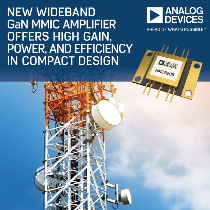 Sous la référence HMC8205BF10, Analog Devices introduit un amplificateur de puissance large bande en GaN pour une grande variété d’applications en mode pulsé ou en onde entretenue (CW) : radars, infrastructures sans fil, systèmes de brouillage, équipements de test et de mesure…