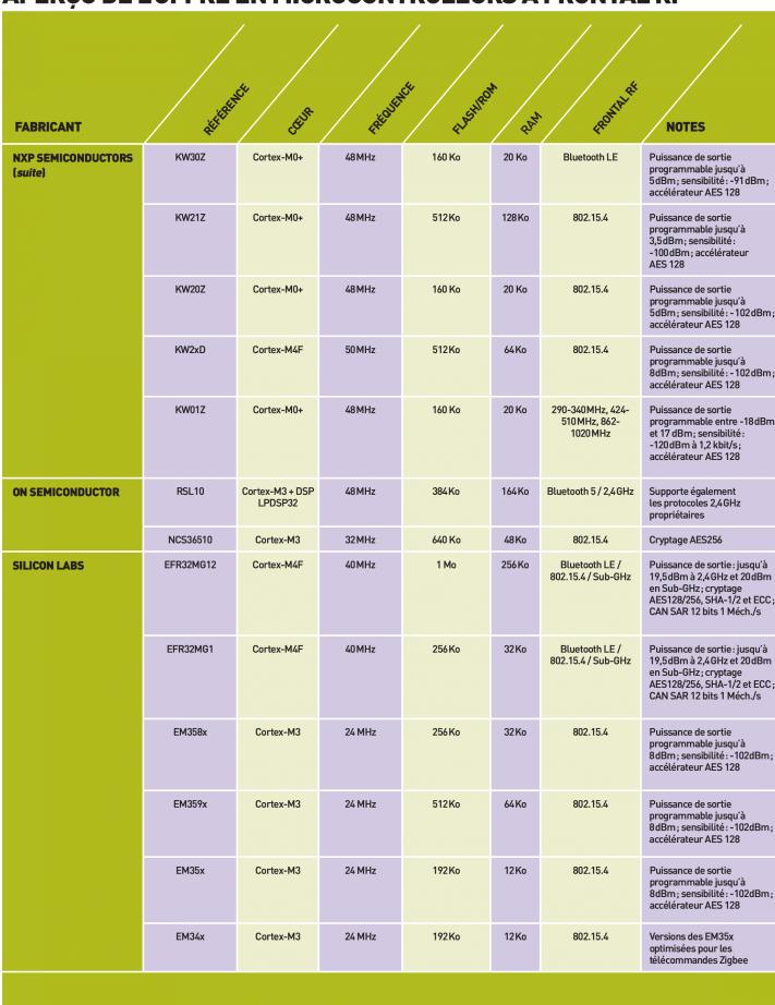 APERÇU DE L’OFFRE EN MICROCONTRÔLEURS À FRONTAL RF
