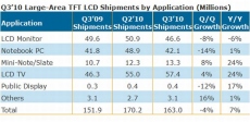Toujours au troisème trimestre, les coréens Samsung Electronics et LG Display ont terminé quasiment à égalité à la première place des fabricants de LCD grands formats avec des parts de marché respectives de 26 et 25,9 % en valeur (5,5 milliards de dollars), devant AU Optronics (16,1 % et 3,4 Mds$) et Chimei Innolux (14 %, 3 Mds$). Pour le trimestre en cours, DisplaySearch estime que le marché devrait progresser de 3 % en séquentiel pour atteindre 168 millions d’unités.