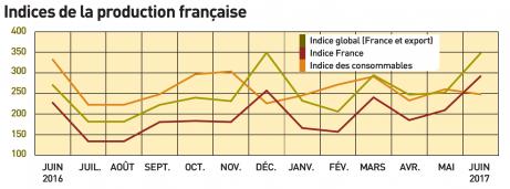 Pour l’indice global de Production fourni par Acsiel Alliance Electronique Collège Equipements et Services (ex-GFIE), la base 100 est en 1995. Celle de l’indice des consommables débute en janvier 2001 (les consommables entrent eux-mêmes dans le calcul de l’indice global).