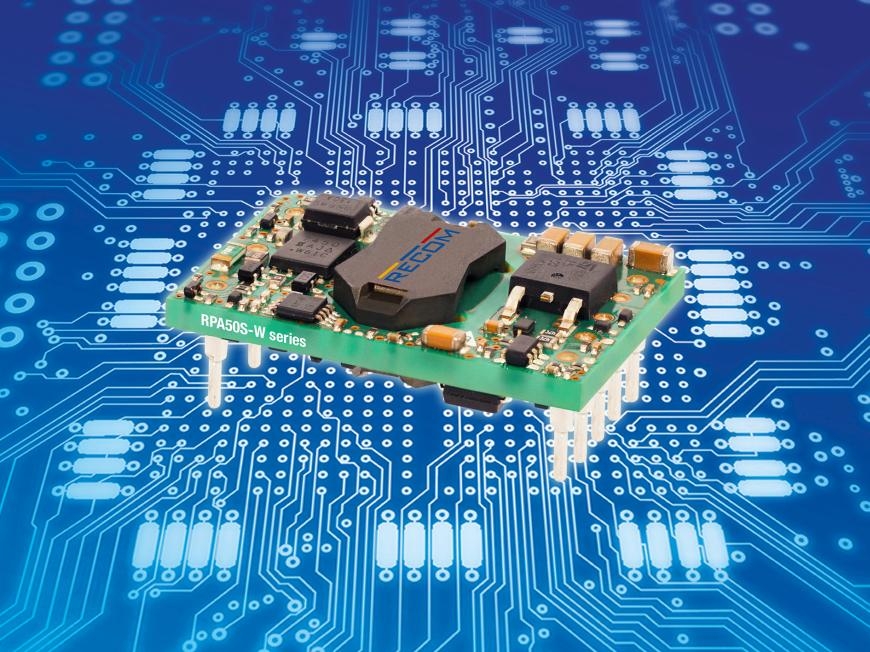Sous la référence RPA50S-W, Recom introduit une série de convertisseurs DC-DC de 50W au format standard 1/16ème de brique. Ces modules, annoncés comme étant économiques, supportent une tension d’entrée dans un rapport 4:1. Ce qui leur permet d’accepter les tensions nominales de 24V, 28V, 48V et 57V. La tension de sortie régulée est, au choix, de 3,3V, 5V ou 12V. La tension d’isolement est quant à elle de 2250 Vdc (pendant 1 minute). Le rendement de 91% autorise un fonctionnement jusqu’à +54°C, à pleine charge et avec une convection naturelle. Au-delà de cette température et jusqu’à +85°C, il doit être tenu compte d’un déclassement.