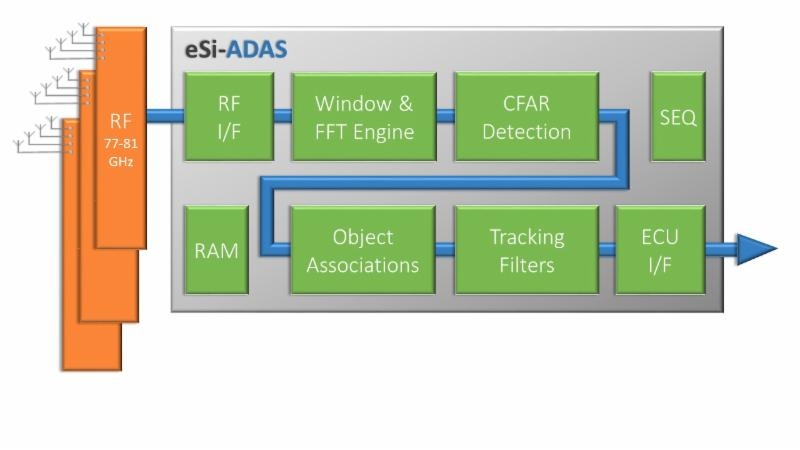 EnSilica présente un coprocesseur dédié au traitement des informations issues d’un radar/lidar automobile pour véhicules autonomes et semi-autonomes. Ce eSi-ADAS Radar Imaging Co-processor traite les données avec une latence inférieure à 20ms. Il supporte jusqu’à 256 antennes virtuelles avec une conversion analogique-numérique délivrant 100Méch./s de données brutes. Des moteurs matériels accélèrent le traitement d’algorithmes récurrents (Fourier, Doppler, filtrage Kalman…).