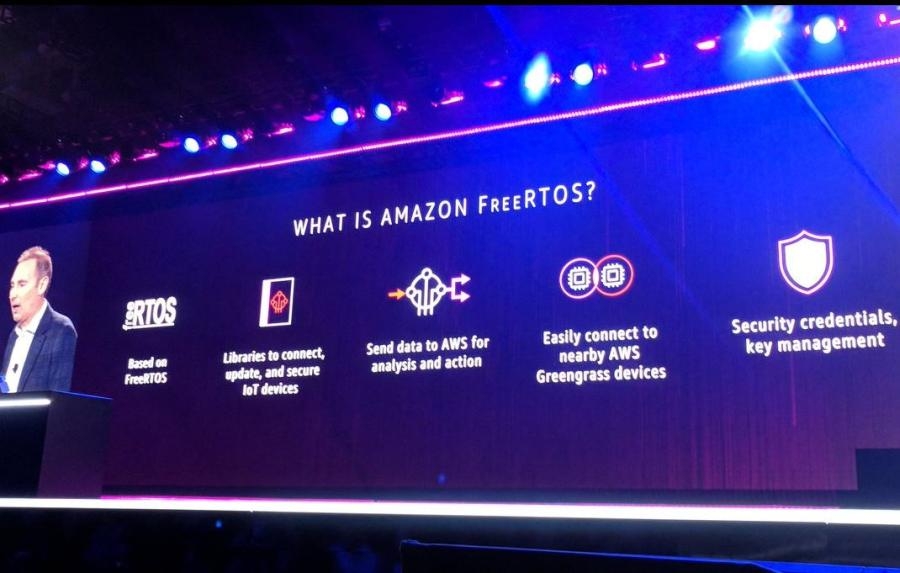 Amazon a profité de la conférence pour développeurs re:Invent, qui s’est récemment tenue à Las Vegas, pour dévoiler son système d’exploitation temps réel pour microcontrôleurs. Celui-ci est basé sur le populaire noyau open source FreeRTOS, à faible empreinte mémoire. Cet Amazon FreeRTOS, alias a:FreeRTOS, entend favoriser la connexion d’une myriade d’appareils, dotés d’un microcontrôleur, à la plate-forme en nuage AWS (Amazon Web Services) du géant américain.