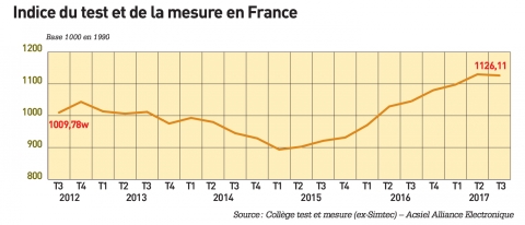 > La tendance haussière observée depuis deux ans semble arrivée à une limite. L’indice du test et de la mesure a en effet été stable au 3 e trimestre 2017 par rapport au trimestre précédent, indique le collège dédié à ce secteur au sein d’Acsiel.