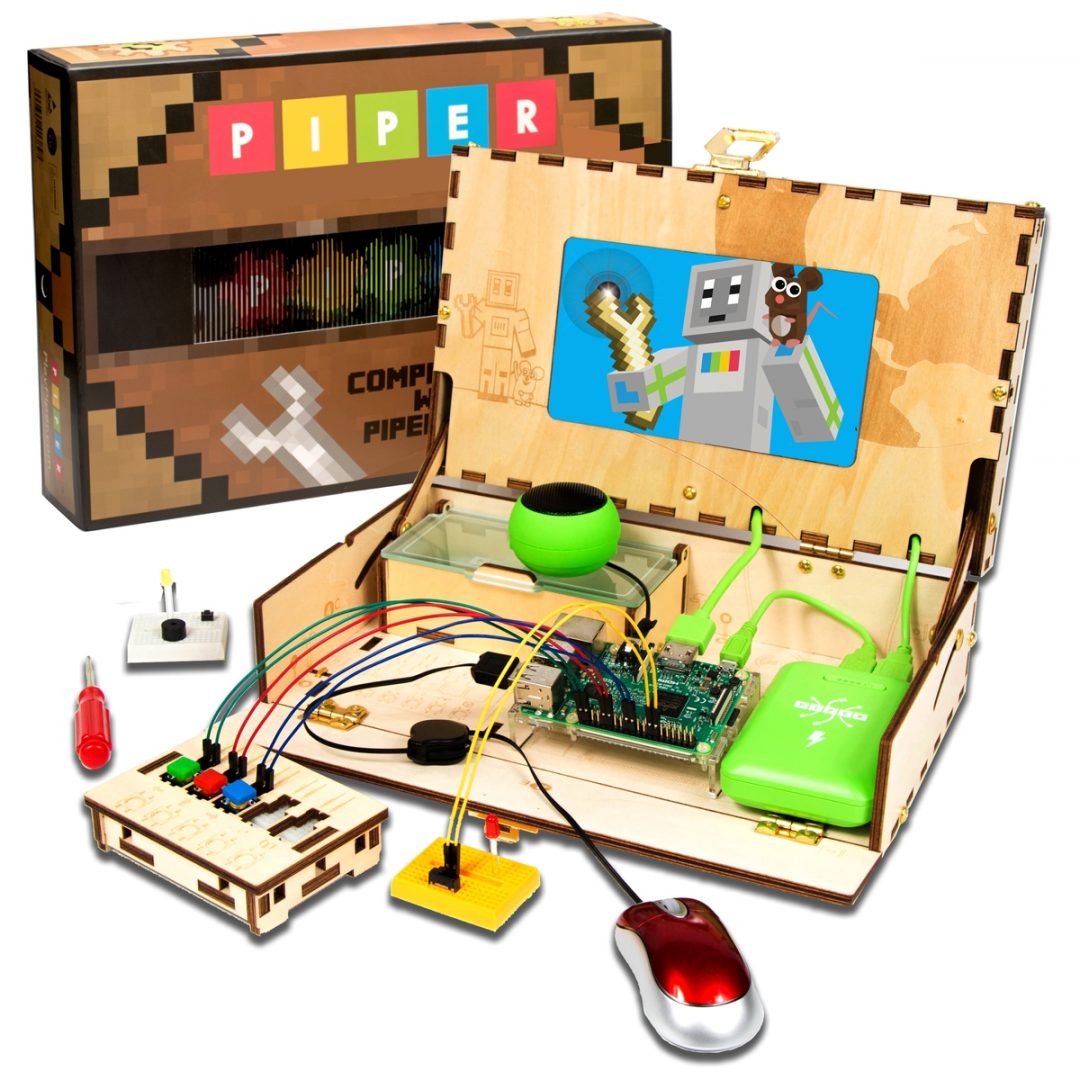 Le kit Piper est basé sur une carte Raspberry Pi 3 et comprend un écran LCD, une souris, une carte mémoire SD, une version du jeu Minecraft et de nombreux modules. Il est vendu environ 300€.