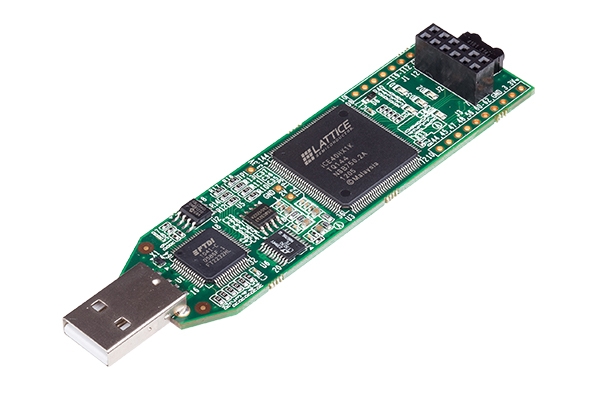 Le iCEstick de Lattice est une carte compacte (de format clé USB) facile à utiliser et capable de programmer des dispositifs via une interface PC. Le iCEstick contient un connecteur Digilent Pmod™ 2 * 6 position pour la connexion d’autres périphériques, 16 connexions E/S numériques (3,3 V) ainsi qu’un émetteur-récepteur IrDA. La programmation du iCEstick s’effectue à l’aide du logiciel de développement HDL iCEcube2™ de Lattice. La programmation du flash SPI s’effectue à l’aide du programmeur Lattice Diamond.