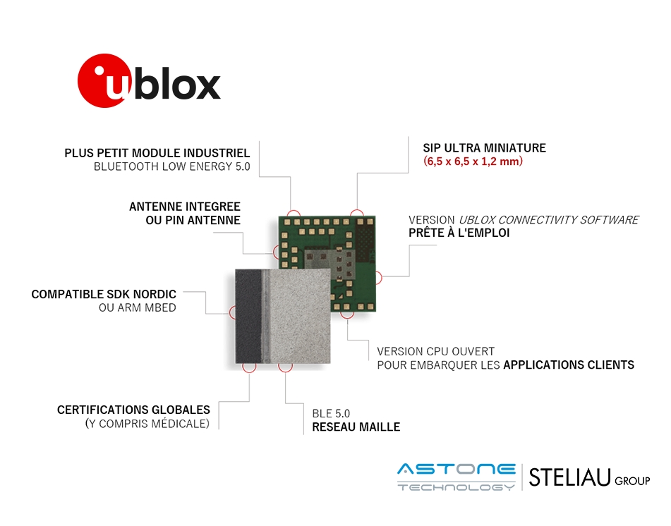 Le module SiP ANNA-B112 offre les dernières évolutions de performances Bluetooth Low Energy 5.0 dans un boîtier ultra miniature (6,5 x 6,5mm).