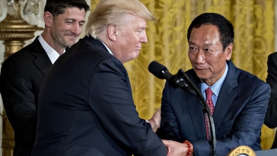 Le 28 juin dernier, Hon Hai Precision, numéro 1 mondial de la sous-traitance en électronique, a organisé une cérémonie de pose de la première pierre de l’usine d’écrans LCD pour laquelle il a prévu d’investir 10 milliards de dollars. Le président Trump y était présent.