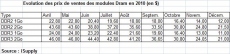 D’une manière générale, les prix des mémoires Dram ont diminué à cause d’une plus faible demande que prévu de la part des fabricants de PC, notamment au premier semestre 2010, et en raison d’une augmentation de la production au second semestre.