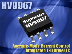 Référencé HV9967, le circuit intègre un Mosfet 60 V dont la résistance à l’état passant est de 0,8 Ohm. Ce transistor peut être utilisé comme commutateur dans un convertisseur abaisseur de tension ou pour commander un Mosfet externe haute tension à appauvrissement, tel le DN2450 de la société.