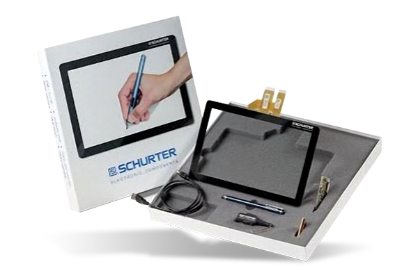 Le touchkit pour écrans tactiles capacitifs (PCAP) de Schurter comprend les fonctionnalités suivantes : capteurs tactiles capacitifs, reconnaissance d’empreintes palmaires, détection de la présence d’eau, capacité multi-touch, deux modes de sensibilité, et détection simultanée de jusqu’à dix doigts. Un stylet haute précision à détection de pression est également inclus. Le touchkit satisfait aux réglementations en matière de compatibilité électromagnétique (EMC), affiche une immunité de RF par conduction de jusqu’à 10Vrms et une immunité de RF rayonnée de jusqu’à 10V/m.
