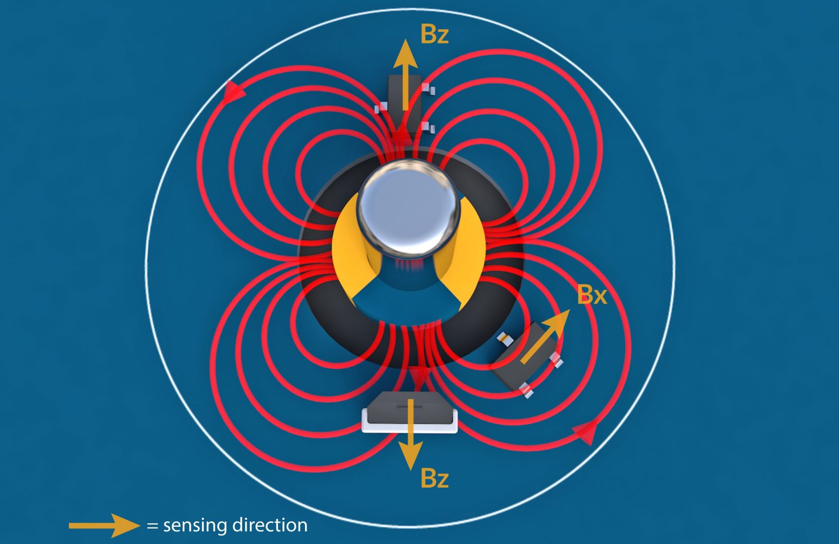 Avec ce concentrateur magnétique intégré, les détecteurs du fabricant belge peuvent capter les composantes latérales du flux magnétique.