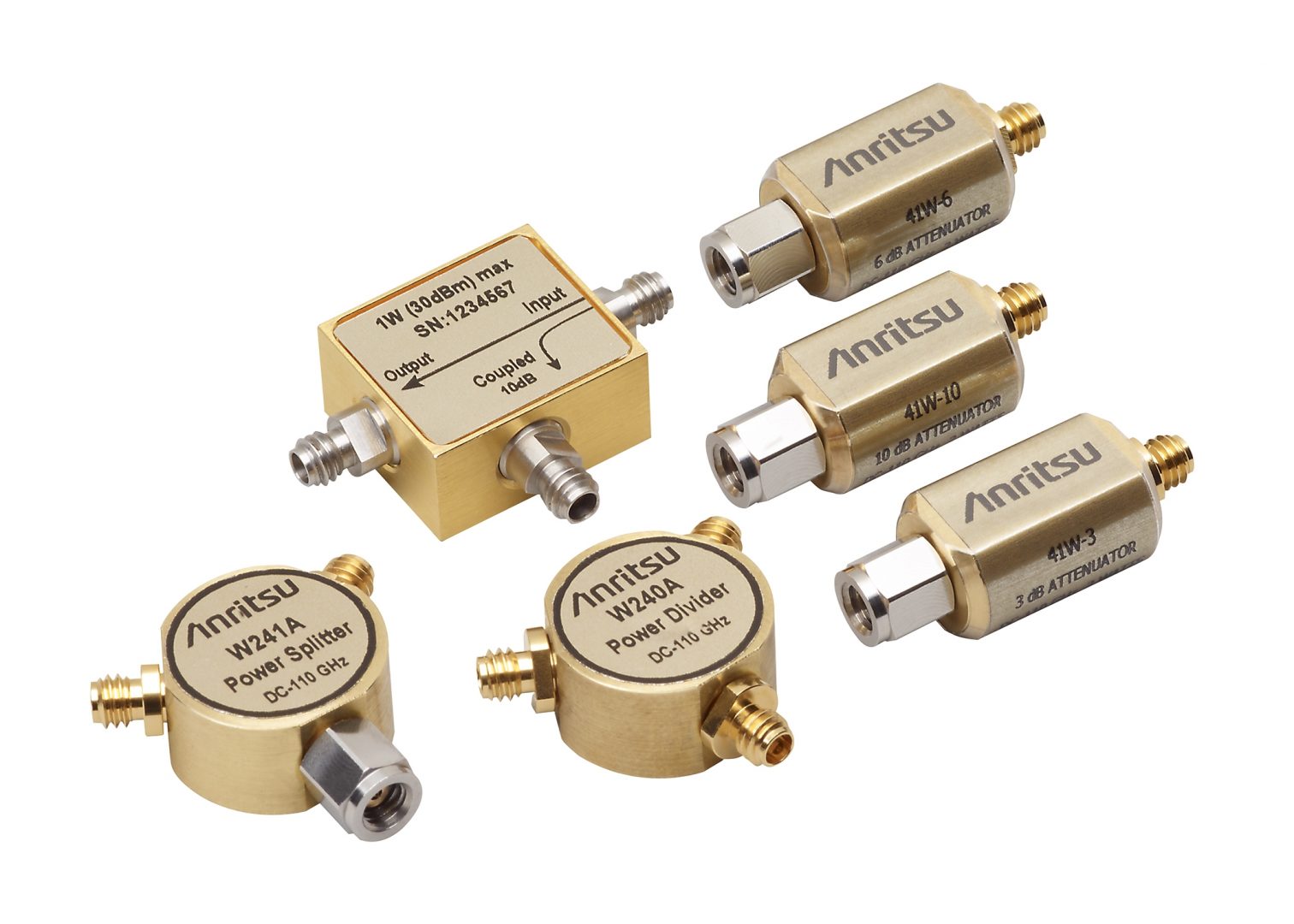 La série W1 comprend le séparateur (splitter) à deux résistances W241A (perte d’insertion de 8,25 dB et perte de retour de l’entrée de 15 dB, entre 50 et 67 GHz), le diviseur de puissance à trois résistances W240A (perte d’insertion de 8,25 dB et perte de retour de l’entrée de 13 dB, entre 50 et 67 GHz), un coupleur directionnel et les atténuateurs fixes 41W-x (atténuation de 3, 6 ou 10 dB). Ils supportent tous une bande de fréquence allant du continu à 110 GHz, d’où l’absence d’adaptateurs et de certains de leurs effets, et donc d’un calibrage, et ils disposent d’un connecteur W1 (compatible avec les connecteurs 1,0 mm).