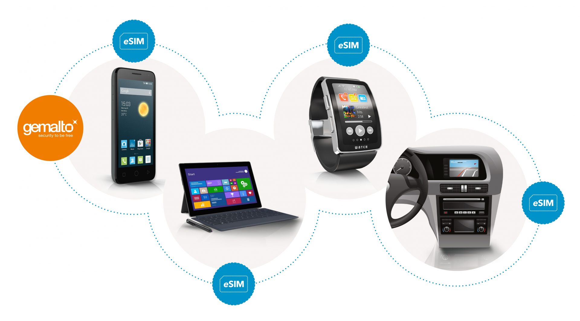 Avec les solutions eSIM de Gemalto, la connectivité mobile est optimisée; grâce à l’activation numérisée des abonnements et à la vérification des identités mobiles, l’expérience utilisateur est simplifiée et la logistique est plus facile pour les opérateurs et les intégrateurs. L’innovation en termes de conception et de fonctionnalités des appareils, comme l’épaisseur, l’étanchéité et les batteries longue durée, a permis des améliorations considérables. Toutes les solutions de Gemalto sont totalement conformes avec les toutes dernières spécifications de la GSMA relatives à la souscription à distance des cartes SIM.