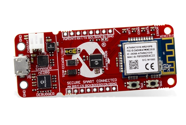 Il intègre un microcontrôleur ATtiny1617, un module à basse puissance Bluetooth® 4.2 RN4871, un dispositif de CryptoAuthentication™ ATECC508A et un accéléromètre triaxial avec capteur de température.