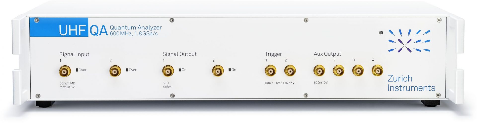 Le rôle de l’analyseur UHFQA (voir photographie) est de lire en parallèle jusqu’à 10 qubits supraconducteurs et spin, sur une étendue de fréquence de ±600 MHz, à une fréquence d’échantillonnage de 1,8 Géch./s et avec une résolution temporelle à la nanoseconde.