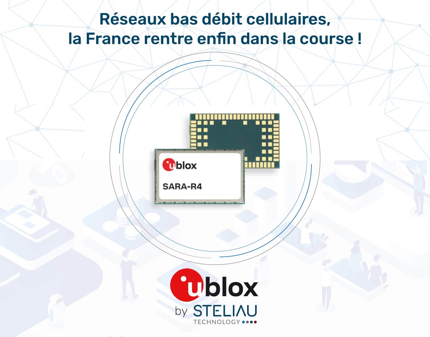 Pour répondre de manière globale aux besoins des applications, UBLOX propose en versions Pin à Pin compatibles aux solutions 2G, 3G et LTE Cat 1 les SARA-R410M-02B (NB-IOT/LTE-M1) et SARA-R412M-02B (NB-IOT/ LTE-M1 / Fall back 2G). La technologie SDR Software Defined Radio utilisée permet de passer d’un réseau à l’autre selon la couverture disponible.