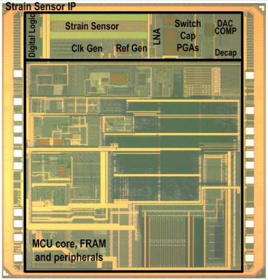 L’américain intègre dans un microcontrôleur un capteur de contrainte piézoélectrique utilisant le même matériau PZT en film mince que la mémoire Fram embarquée.