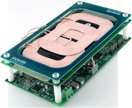 P our le secteur automobile, Rohm a développé une carte d’évaluation associant le principe de recharge sans fil selon