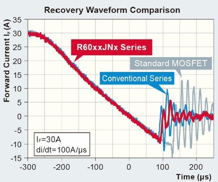 Les PrestoMOS de la série R60xxJNx sont proposés en boîtiers TO-252 (DPAK), TO-263 (D2PAK), TO-220FM, TO3-PF et TO-247. La résistance à l’état passant s’échelonne typiquement entre 45 et 1100 mOhms.