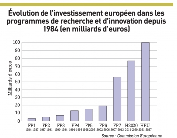 Le budget du programme de recherche et d’innovation «Horizon Europe» pourrait atteindre le montant record de 100 milliards d’euros sur la période 2021-2027 (contre 77 Mde pour